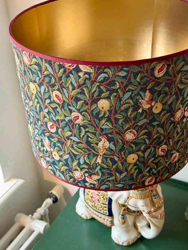 Let op: Afhankelijk van de maat kan de print anders uitvallen.Elke kap wordt met zorg gemaakt in ons atelier, waardoor kleine variaties kunnen voorkomen. Bij een matte goudfolie kan de lichtkleur warmer (oranje/geel) ogen wanneer de lamp aan staat. Dit valt vooral op bij stoffen met een witte achtergrond. Vind je dat minder mooi? Kies dan voor een witte of glanzend gouden folie; deze geven een neutralere lichtkleur. Dit product betreft alleen de lampenkap; de lampenvoet is apart verkrijgbaar.